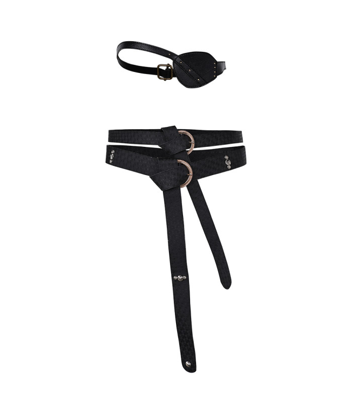 Medieval Fantasy Black Leather Belt Eyepatch Halloween Costume Accessories