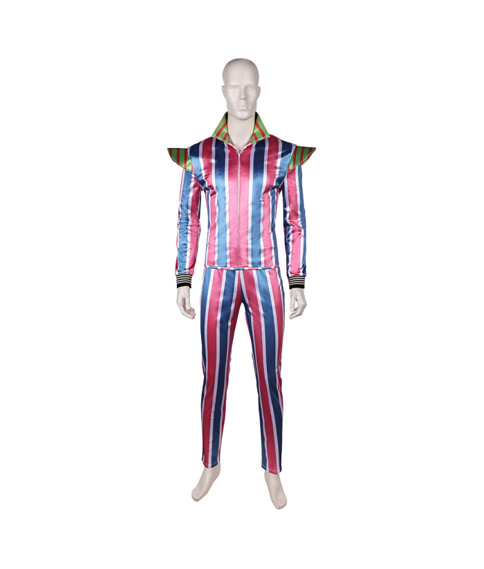 Men 70s Retro Blue Red Strip Outfit Rockstar Performance Outfit Halloween Costume.Best choice for Comic-con, Halloween, Carnival, Christmas and other parties