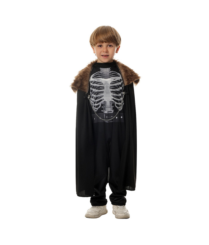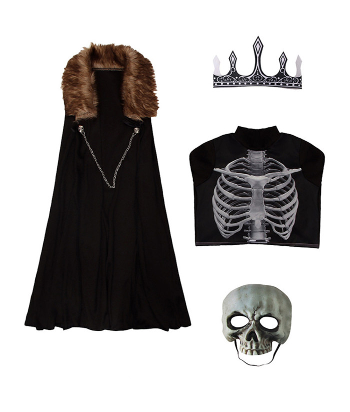Kids Children Fantasy Skeleton Kight 4Pcs Fullset Outfit Halloween Costume