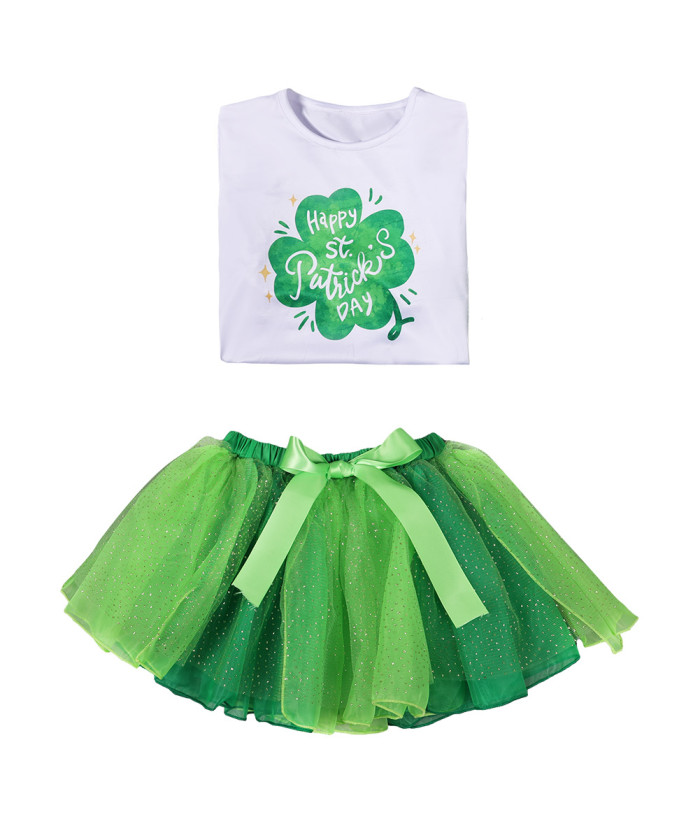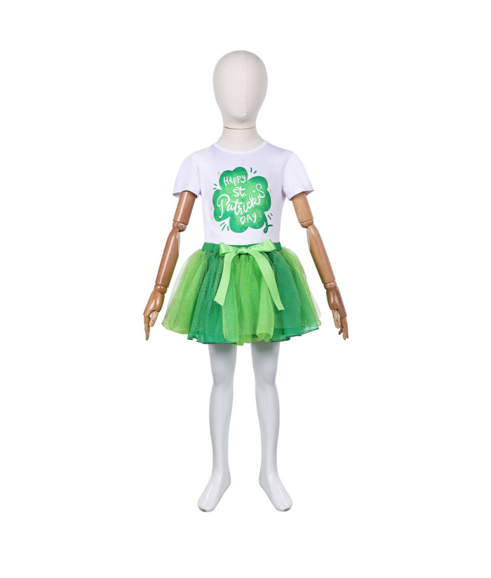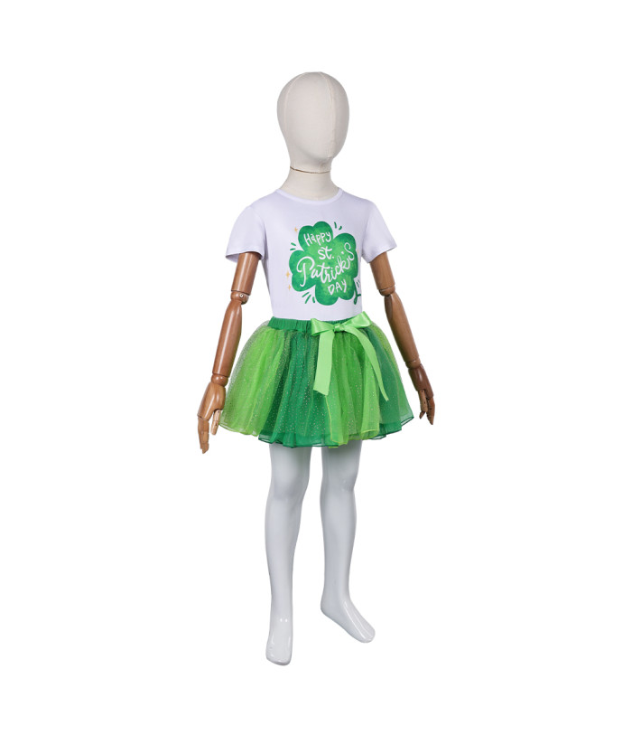 Kids Children St. Patrick Green Clover Tutu Skirt Halloween Costume