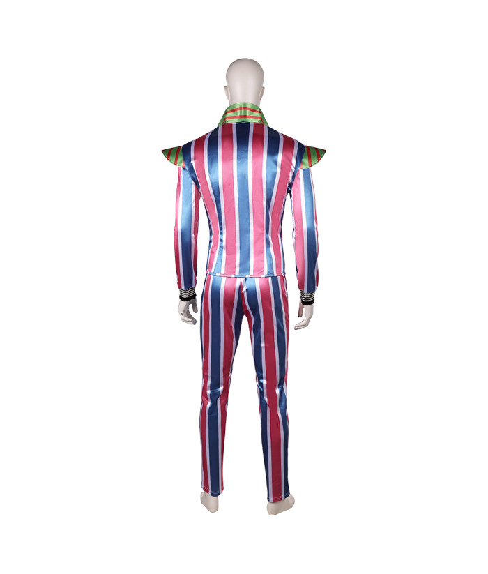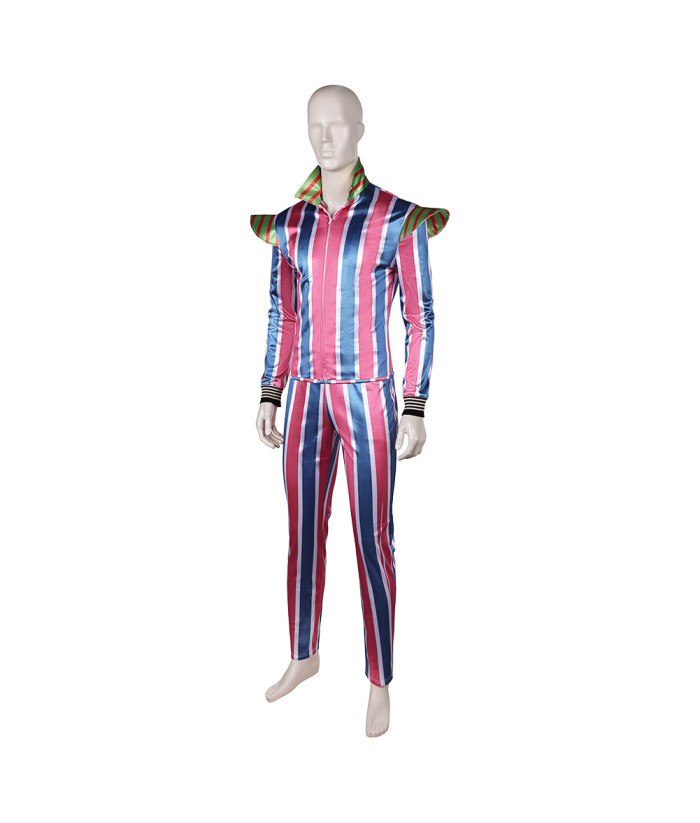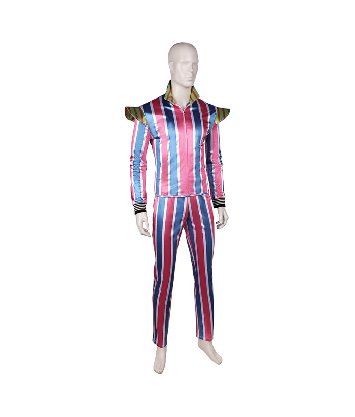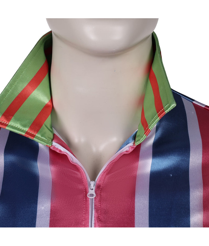 Men 70s Retro Blue Red Strip Outfit Rockstar Performance Outfit Halloween Costume.Best choice for Comic-con, Halloween, Carnival, Christmas and other parties