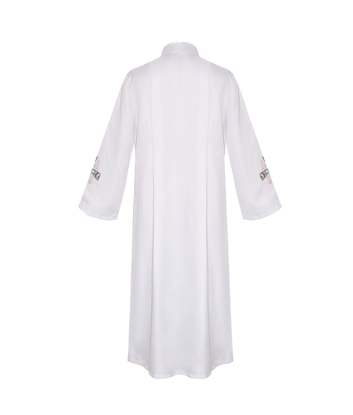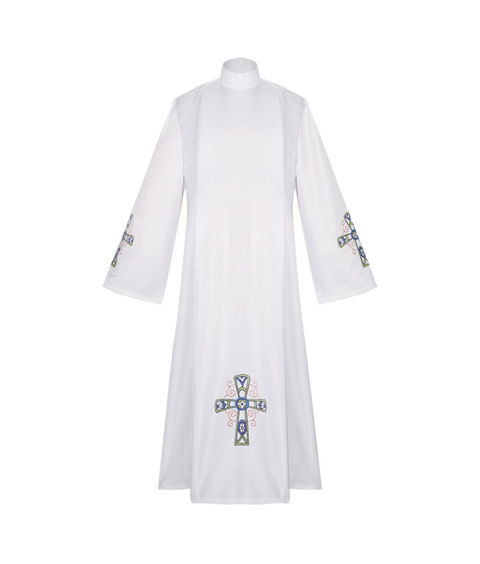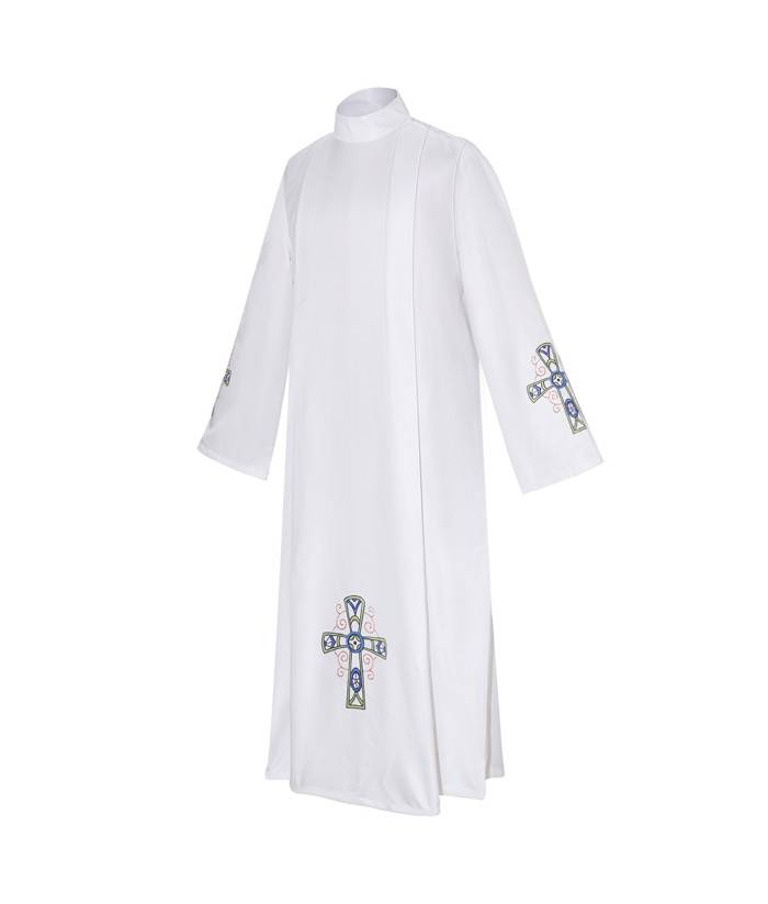 Buy Men Blue Lace Cross Print Baptism Choir White Robe Halloween Cosplay Costume.Best Choice for Halloween, cosplay, carnival, comic-con, party, Christmas, Xmas, masquerade and etc.