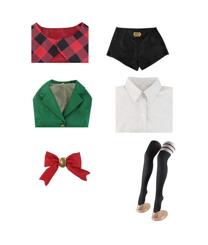 Buy Men Red Fannel Shawl Green Suit School Uniform Bow Tie Halloween Costume.Best Choice for Halloween, cosplay, carnival, comic-con, party, Christmas, Xmas, masquerade and etc.