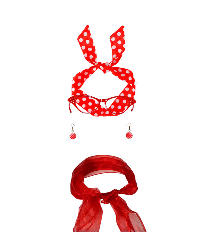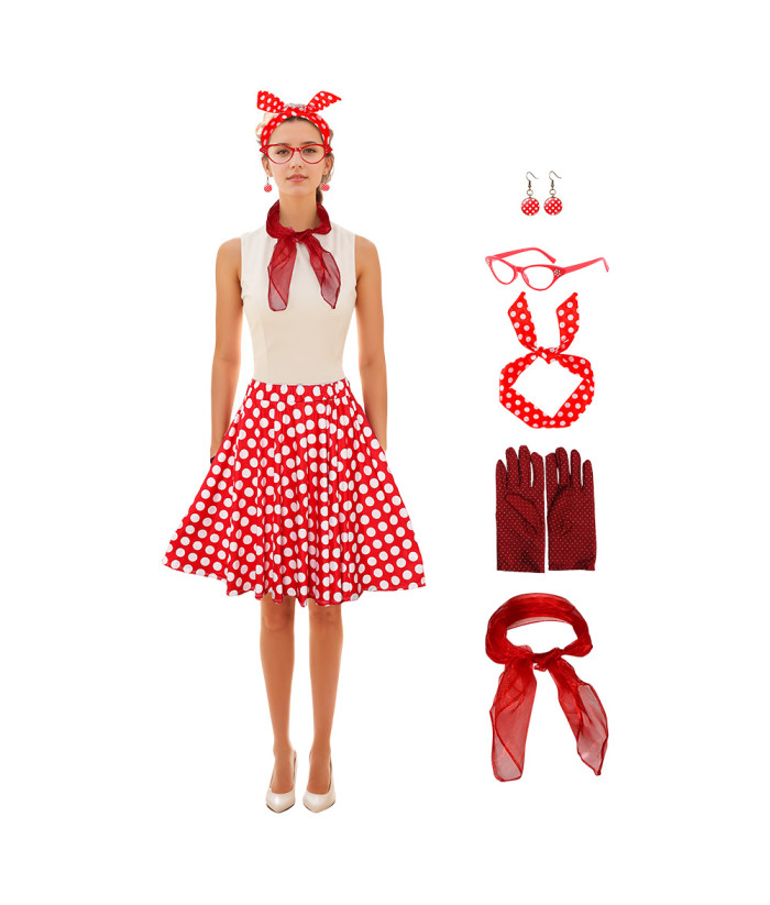 Buy Women 50s Red Polka Dot Skirt 6Pcs Halloween Costume.Best Choice for Halloween, cosplay, carnival, comic-con, party, Christmas, Xmas, masquerade and etc.