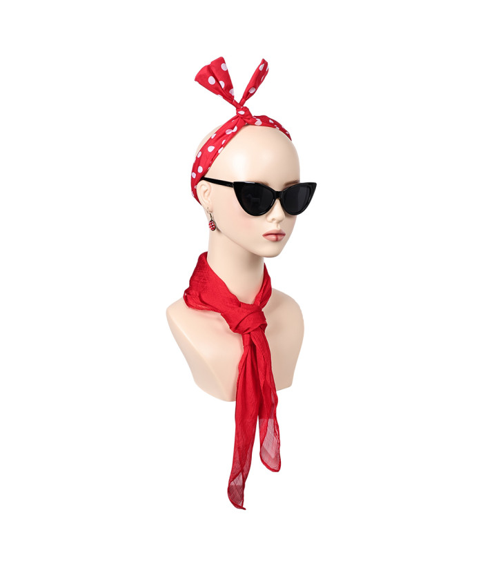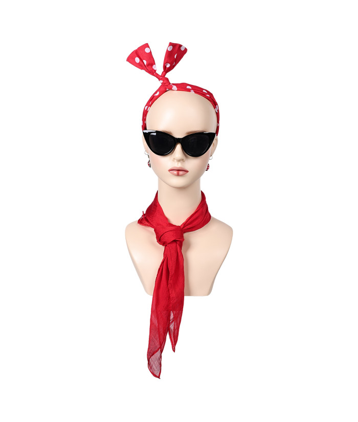 Women 50s Red Scarf Glasses Tie Earings Halloween Cosplay Costume Accessories.Best choice for Comic-con, Halloween, Carnival, Christmas and other parties