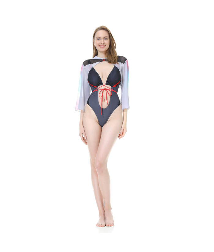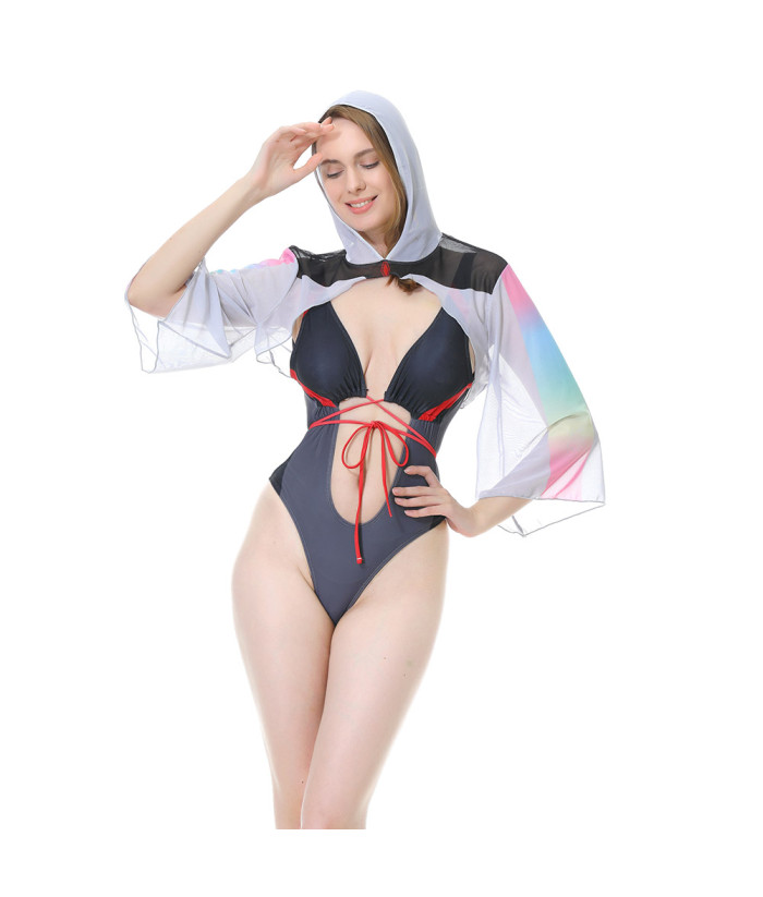 Women Black Designed Swimsuit White Shawl Sexy Swimsuit 2Pcs Summer Poolparty . Best Choice for Halloween, cosplay, carnival, comic-con, party, Christmas, Xmas, masquerade and etc.