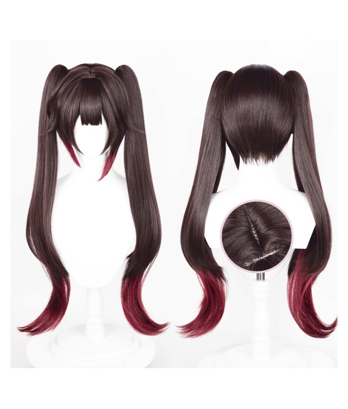 Women Double Pony Tail Long Red Hair Wig Halloween Costume Accessories