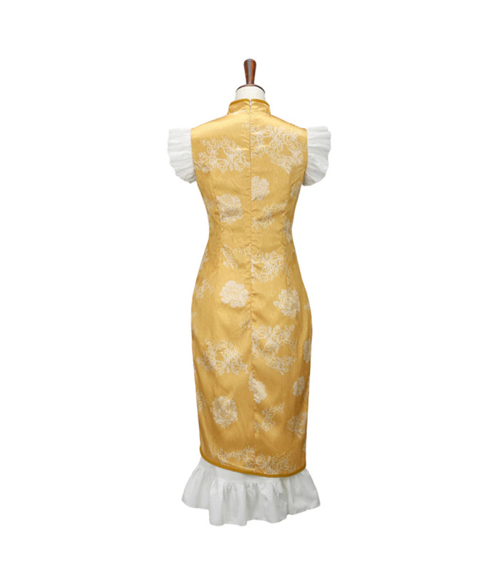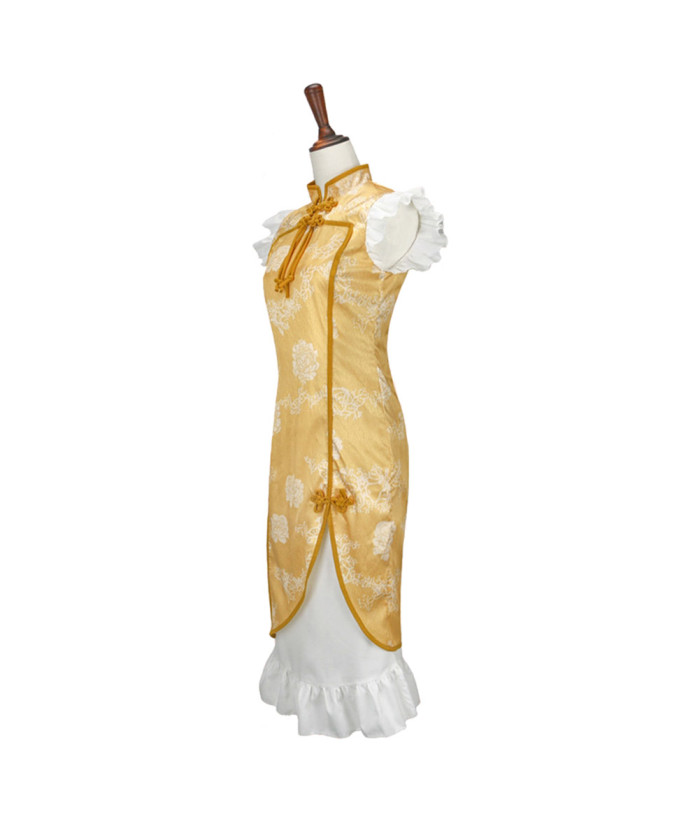 Women Golden Cheongsam Slim Fit Sexy Halloween Costume. Best Choice for Halloween, cosplay, carnival, comic-con, party, Christmas, Xmas, masquerade and etc.