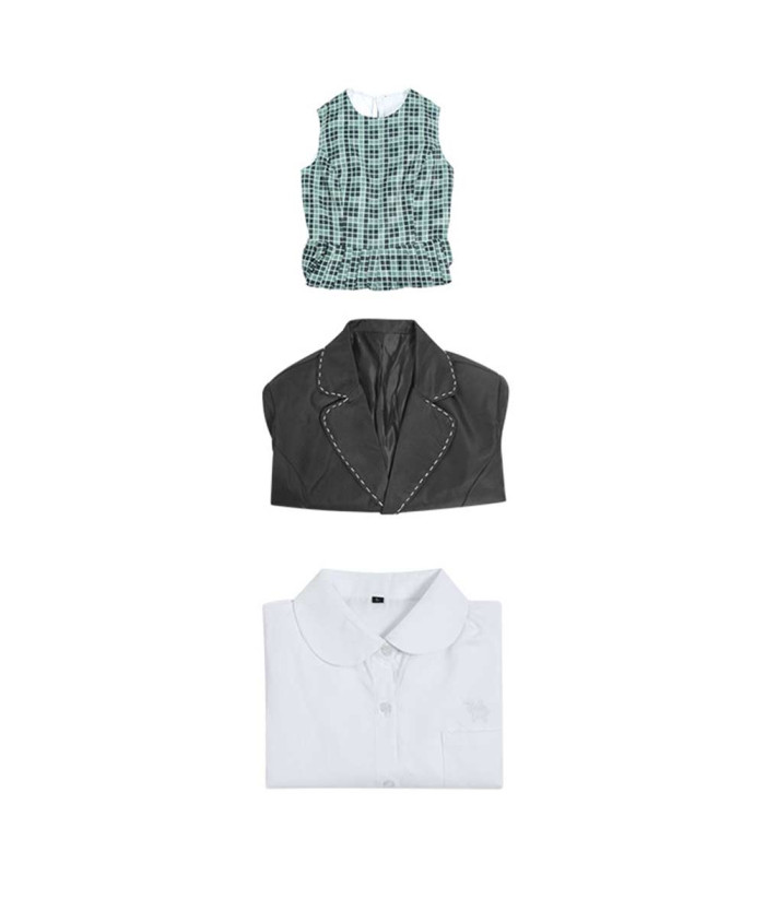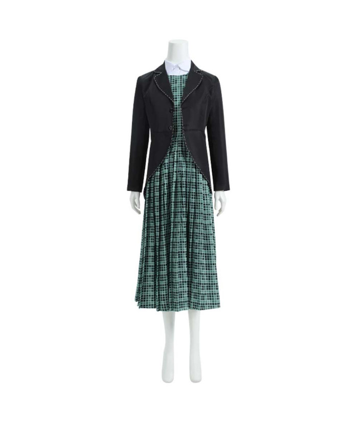 Women Gothic Style Black Coat Green Dress Halloween Costume