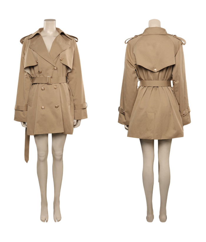 Women Khaki Short Coat Jacket Windbreaker Popular Style Outfit