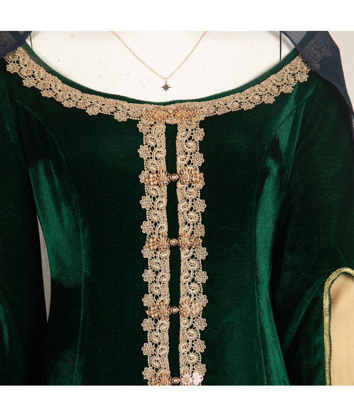 Buy Women Medieval Dark Green Suit Fantasy World Queen Halloween Cosplay Costume.Best Choice for Halloween, cosplay, carnival, comic-con, party, Christmas, Xmas, masquerade and etc.