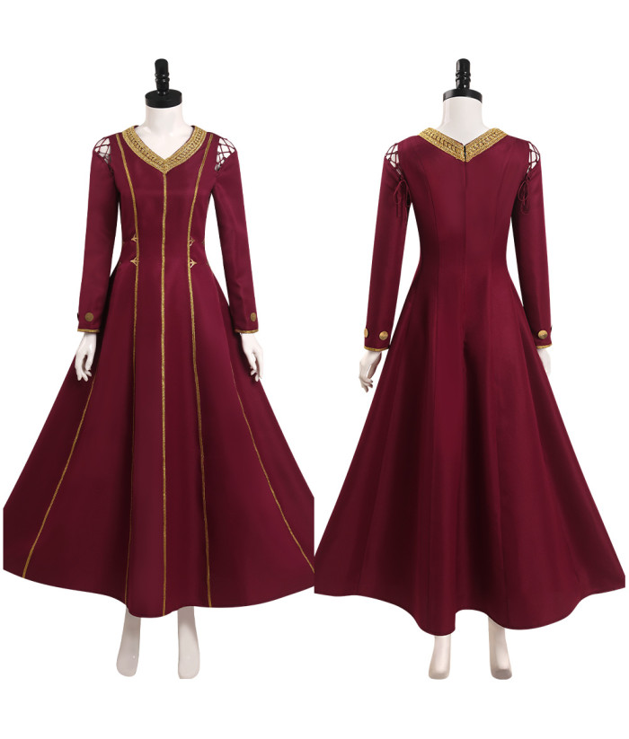 Women Medieval Fantasy Palace Golden Strip Red Dress V Neck Halloween Costume. Female Size:S-L Are In Stock. The Order Processing Time: 2-3 Working Days.