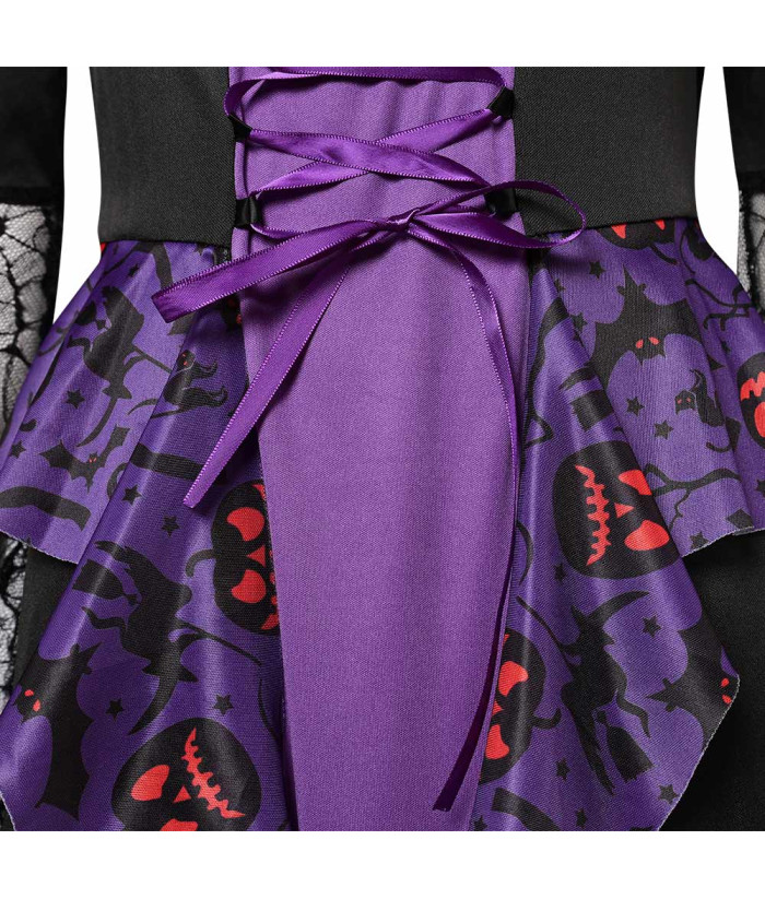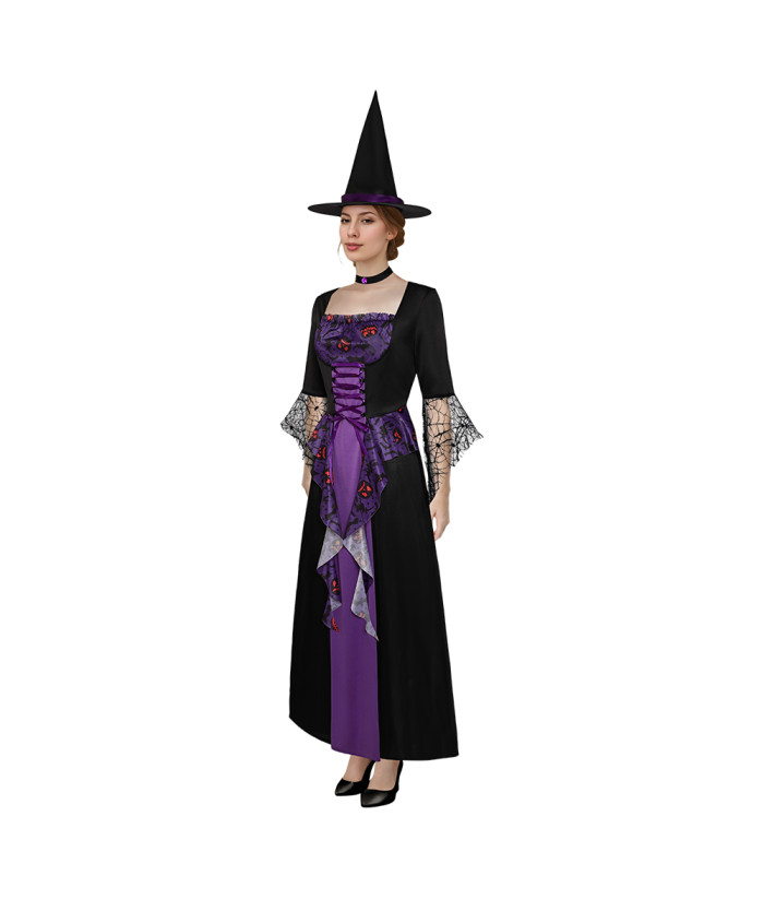 Women Purple Dress Web Sleeves Luxury Witch Role Play Fullset Halloween Costume